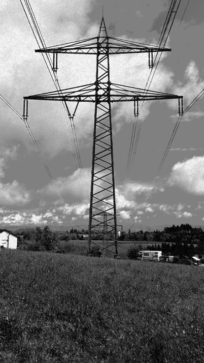 Erkennst du keinen kleinen roten Fleck unten neben dem Mast? Er zeigt einen Menschen und damit die brachiale Dimension der neuen Masten, die das Ortsbild von Egg nachhaltig verschandeln werden.