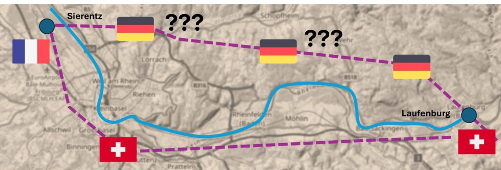 Wie kommt man am schnellsten von Laufenburg nach Sierentz im Südelsass? Vieles spricht dafür, eine Stromtrasse zwischen diesen beiden Punkten durch die Ebene zu führen, also durch die Schweiz nach Frankreich. Warum also wollen transnet BW und Swissgrid (die Schweizer Netzbetreiberin) die Trasse durch den Südschwarzwald ausbauen und zwei weitere Male eine Landesgrenze queren?